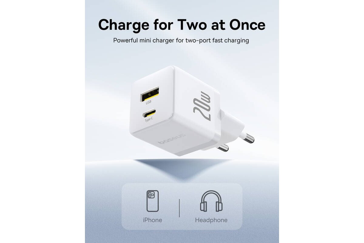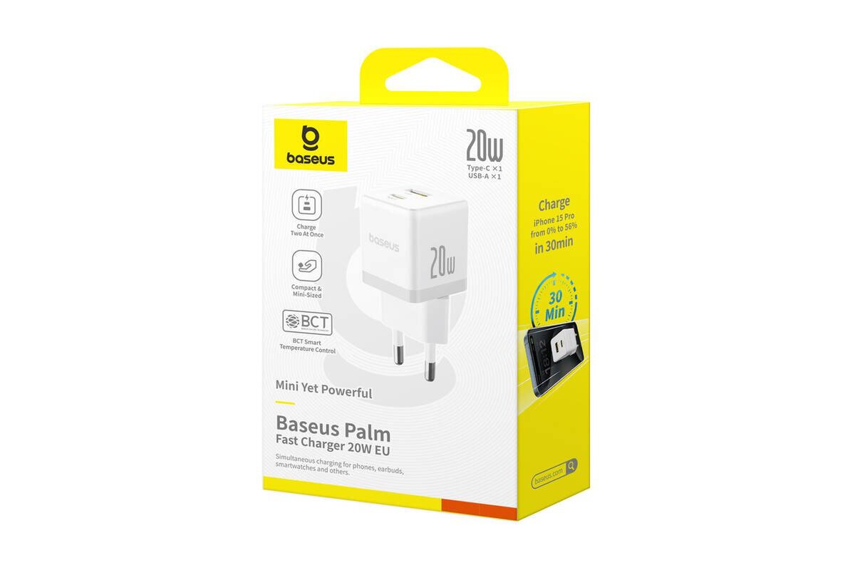 Baseus Palm Fast Nabíječka USB-A + USB-C 20W White