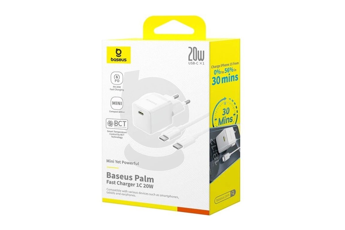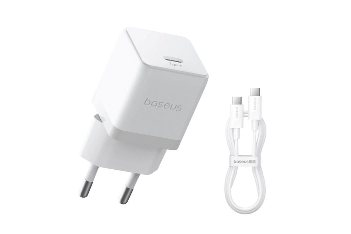 Baseus Palm Fast Nabíječka USB-C 20W + Datový Kabel USB-C/USB-C 1m White