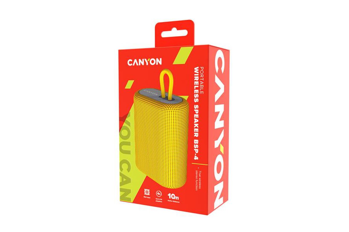 Canyon BSP-4, Bluetooth v 5.0 hangszóró, USB-C gyorstöltés, TF kártya, FM, sárga