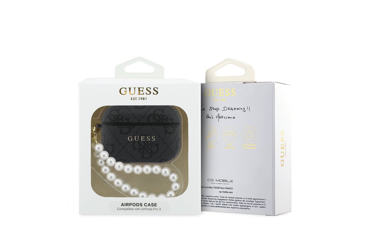 Guess PU 4G Classic Logo Pearl Strap Pouzdro pro AirPods Pro 3 Black