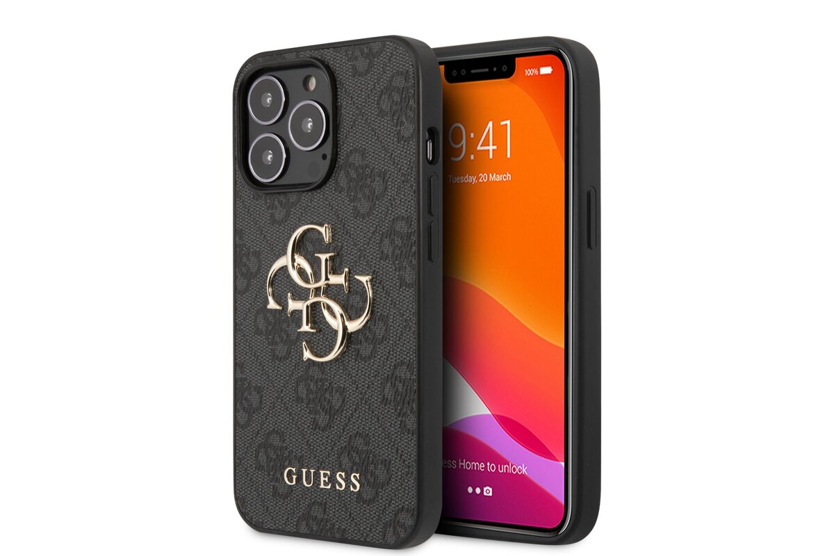 GUHCP13X4GMGGR Guess PU 4G Metal Logo Back Cover for iPhone 13 Pro Max Grey