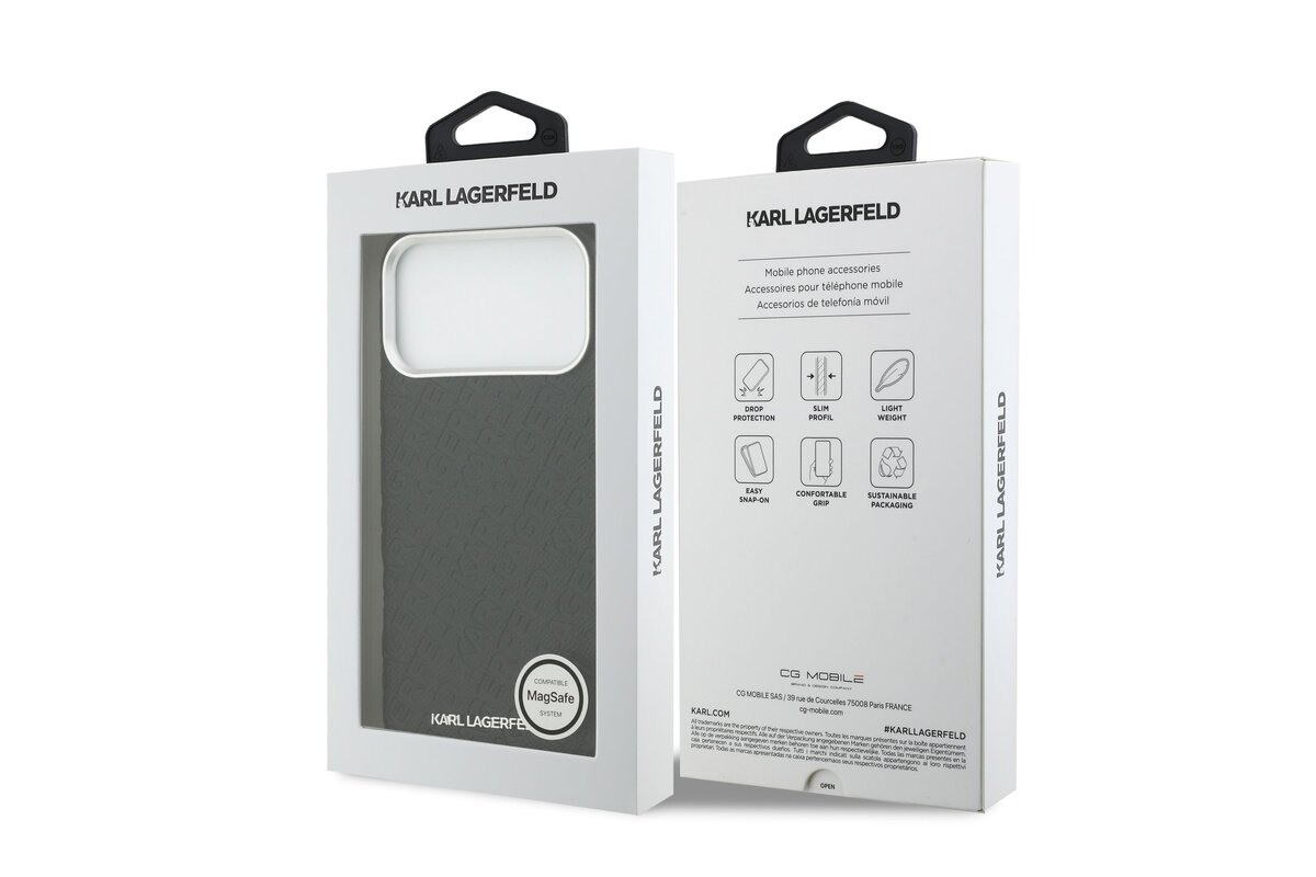 Karl Lagerfeld Grained PU Repeated Logo MagSafe Zadní Kryt pro iPhone 17 Pro Max Black