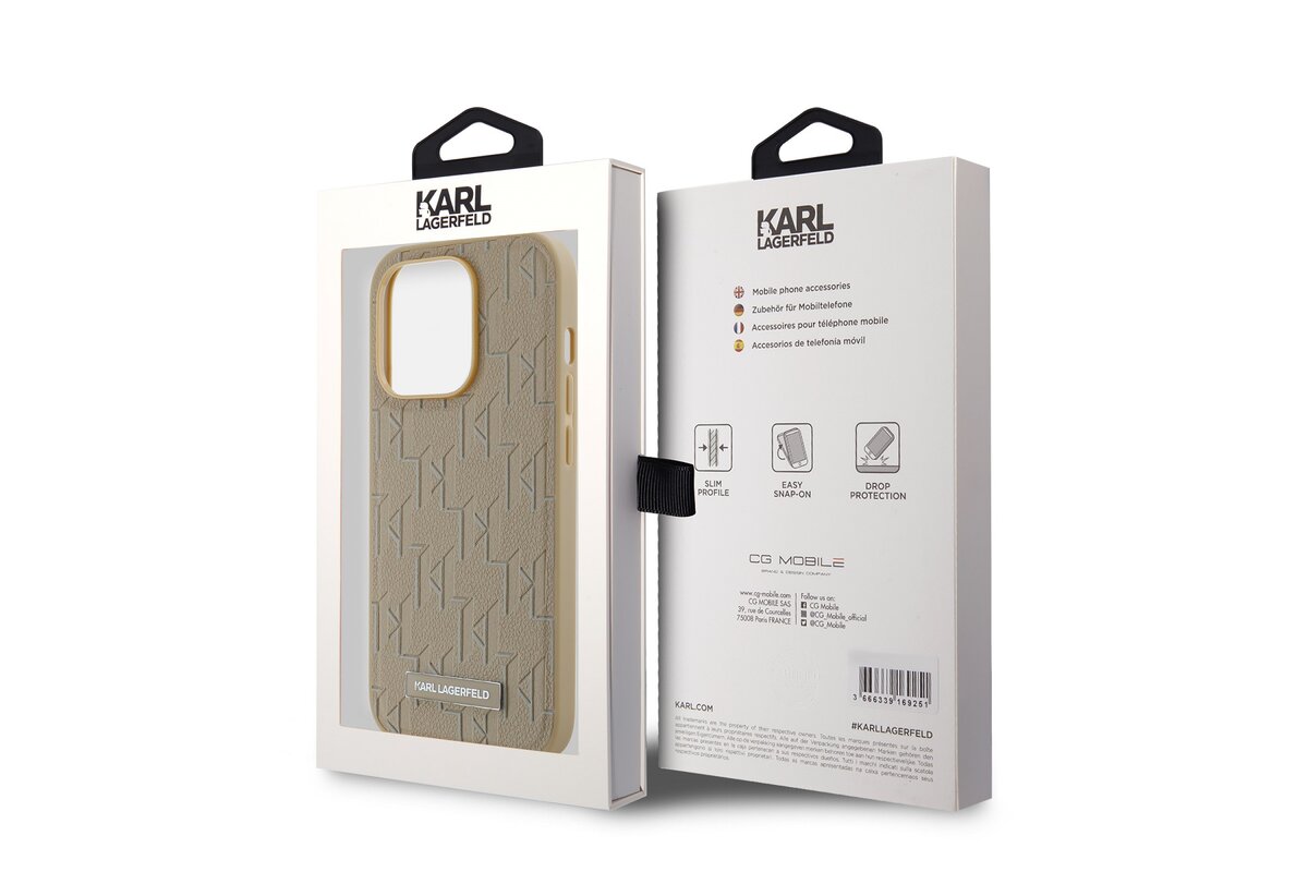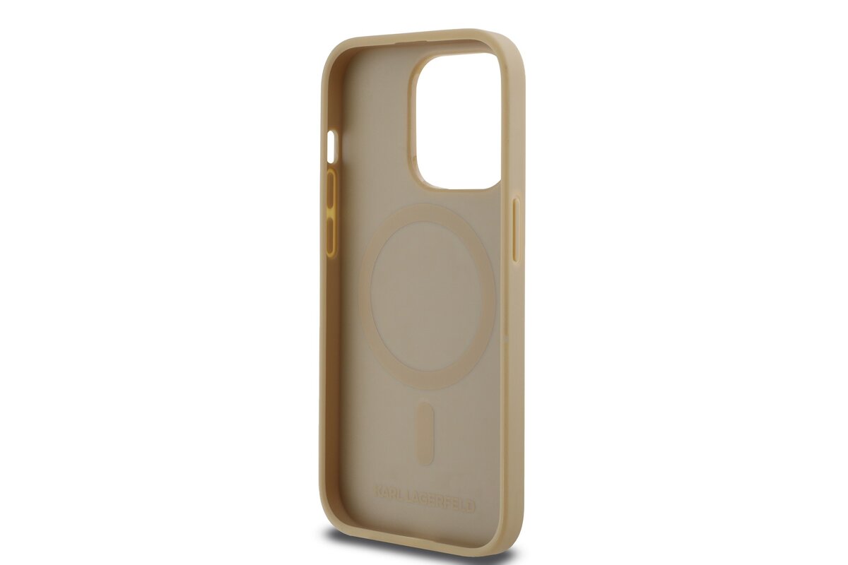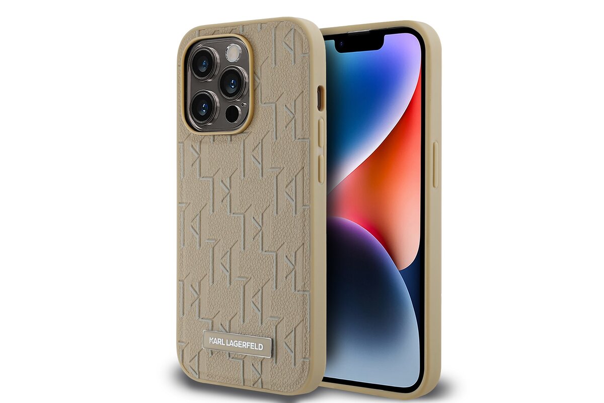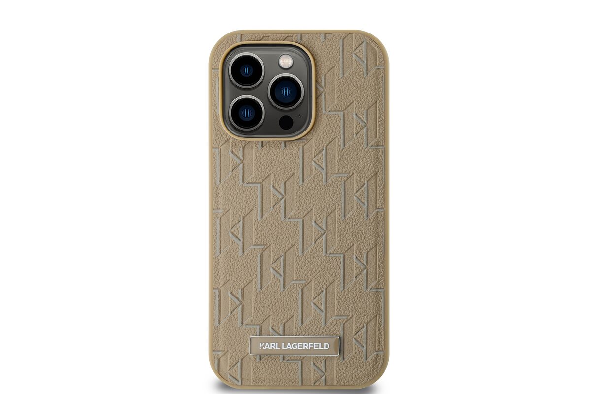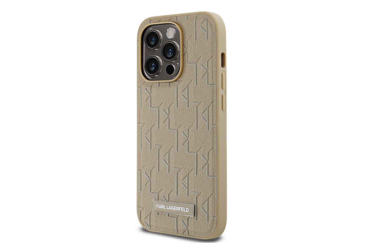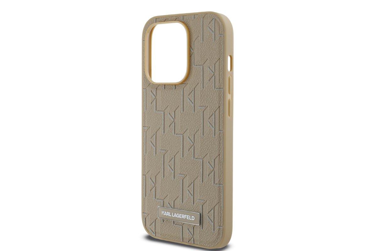 Karl Lagerfeld PU bőr monogram fém logó Magsafe hátlap iPhone 15 Pro Max Beige készülékhez