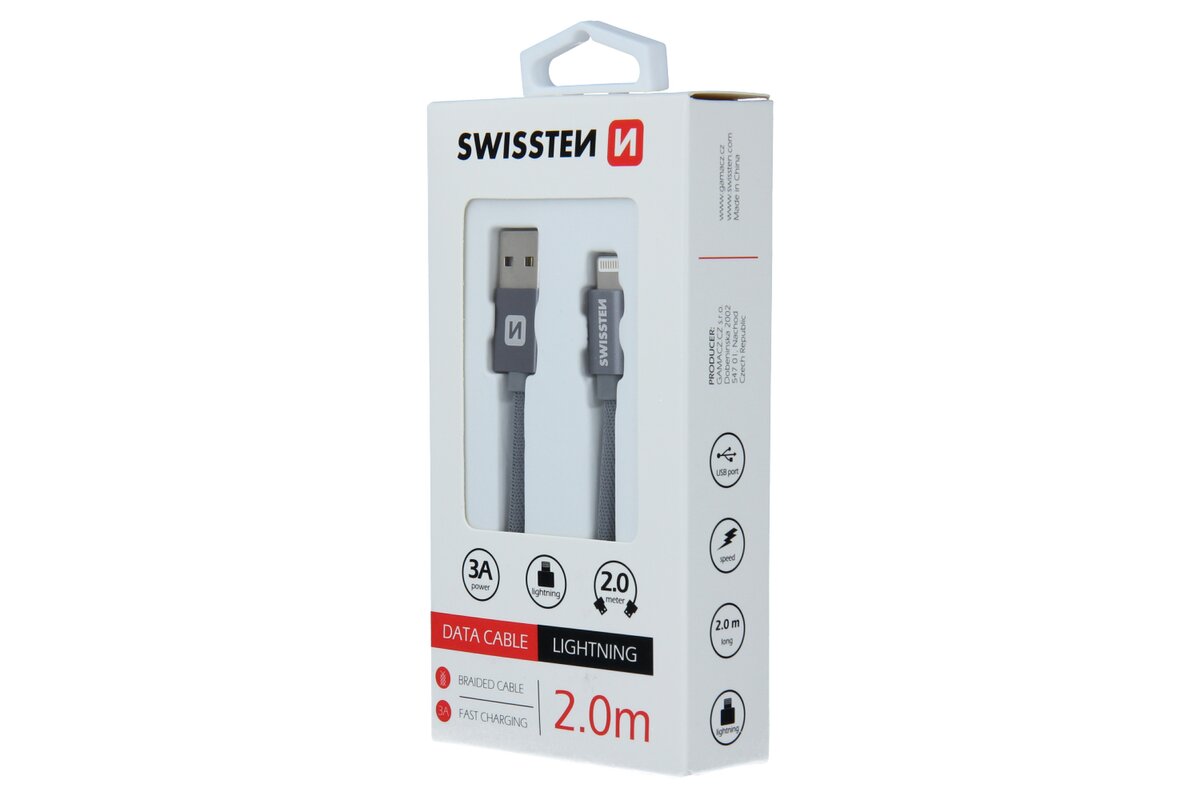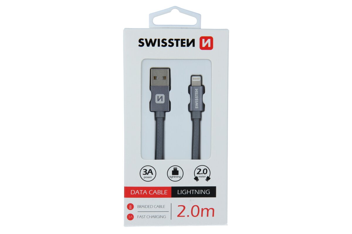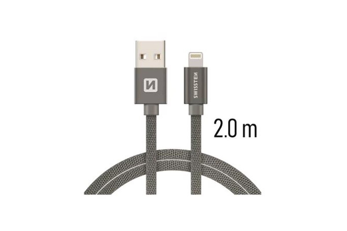 Lightning (8pin) kábel Swissten opletený, 2M - sivé