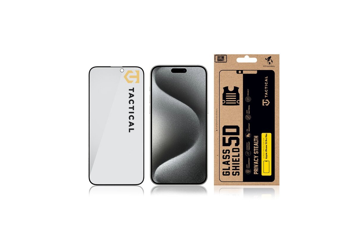 Tactical Glass Shield Privacy Stealth 5D sklo pro Apple iPhone 15 Pro Max Black