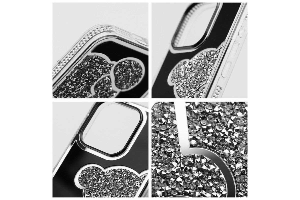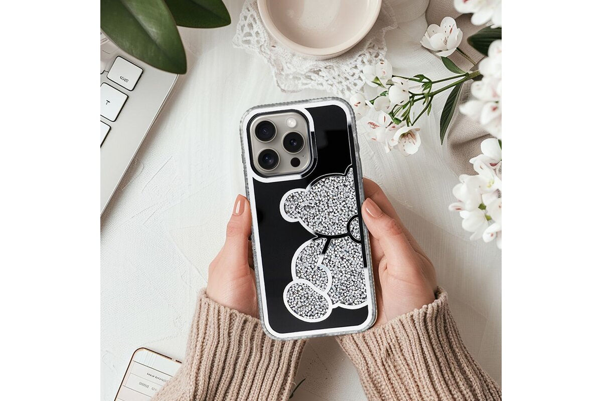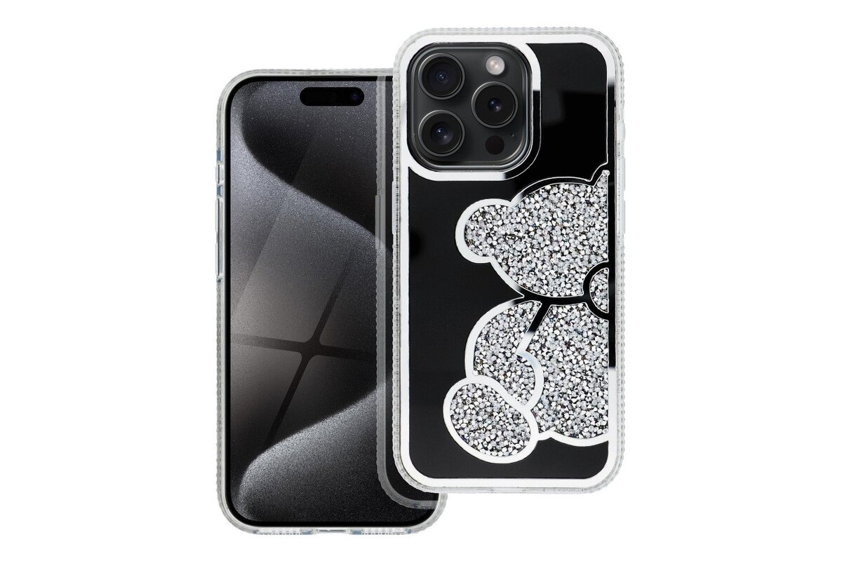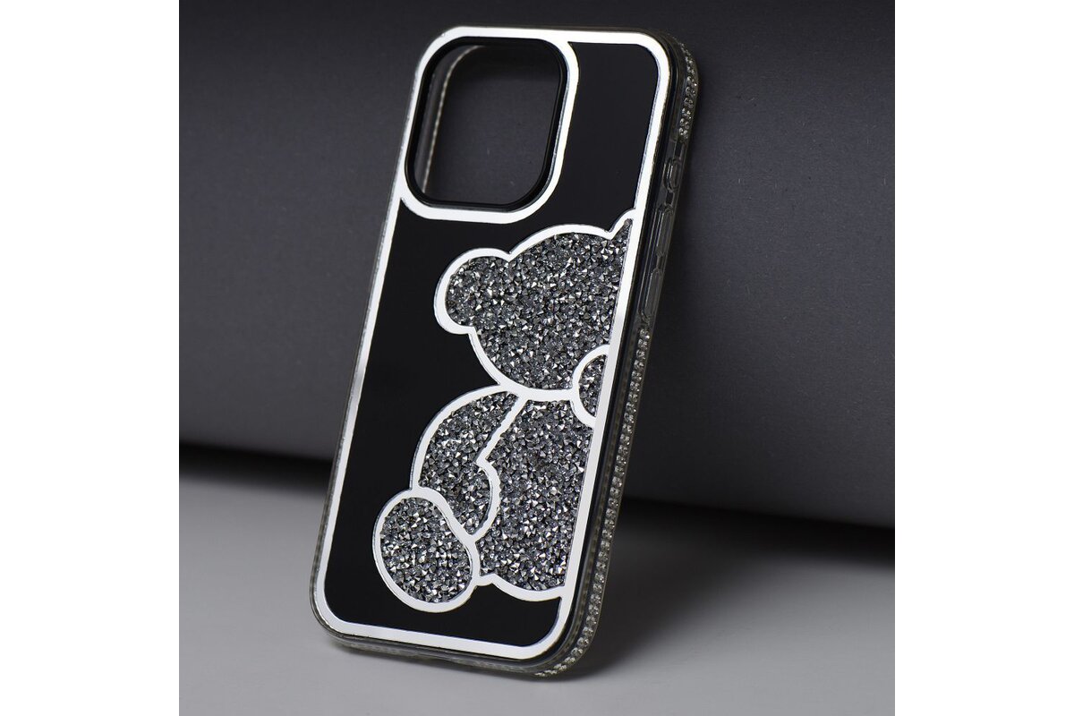 Puzdro Teddy Bear iPhone 13 Pro - strieborné